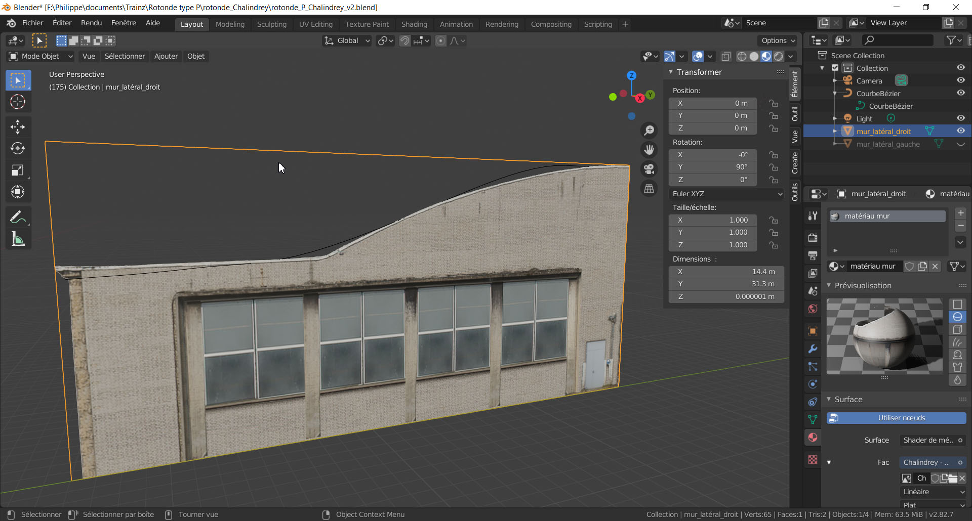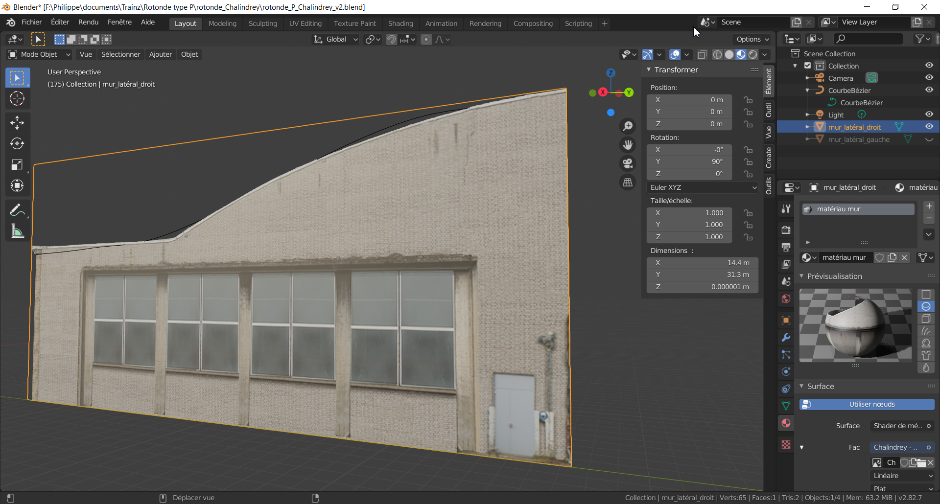 Par exemple, la rotonde de Chalindrey n’a pas le même profil de toiture que celle que j’ai déjà modélisée.