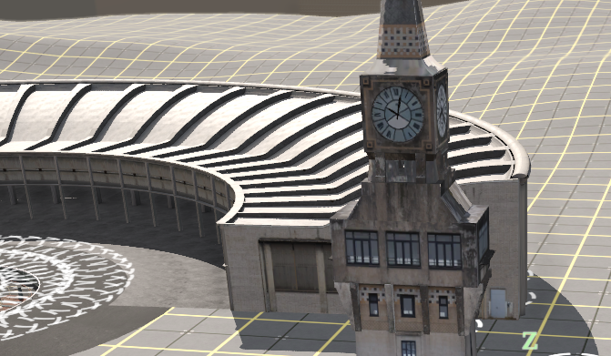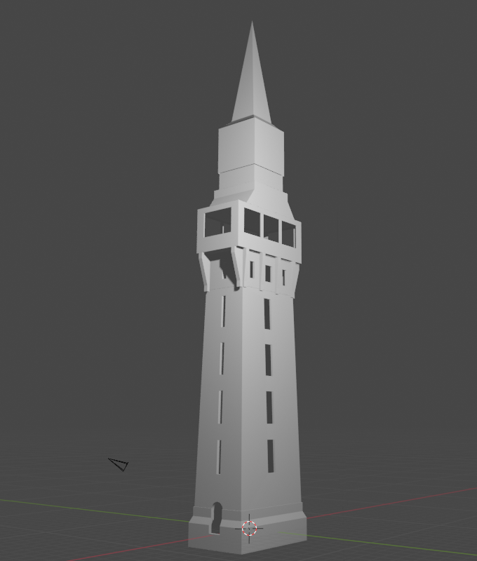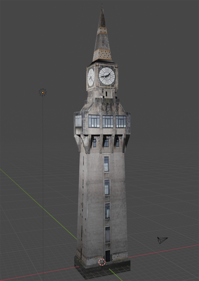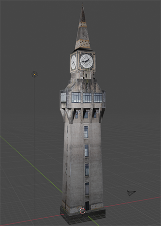 Première version du bâtiment, modélisée en utilisant des textures issues de photos personnelles de la tour d’Aulnoye.