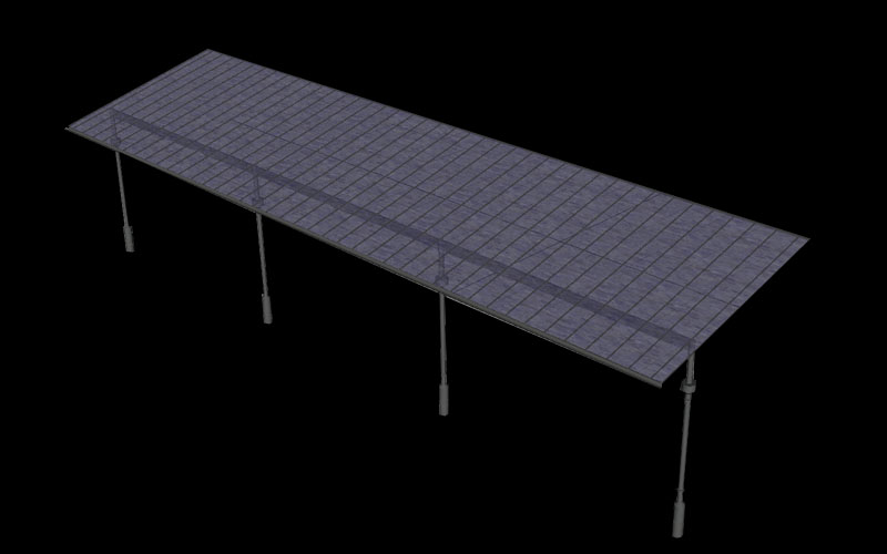 Je viens d’ajouter une vue d’écran montrant l’avancement de la modélisation de la marquise : il faut encore réaliser les côtés et intégrer la technique des LOD [1] pour permettre une progression des détails en fonction de la distance de visualisation de l’objet.