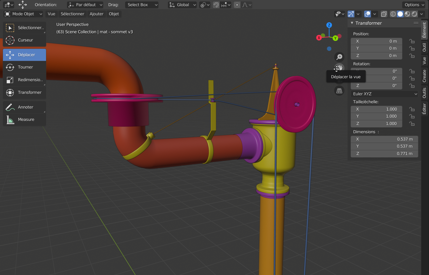 - grue à eau type SEM 49 - modélisation dans Blender - modification de la poulie d’articulation des tubes (07 novembre 2020)
