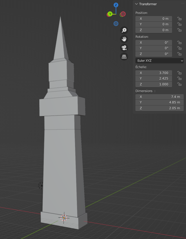 Première version du bâtiment, modélisée en utilisant des textures issues de photos personnelles de la tour d’Aulnoye.