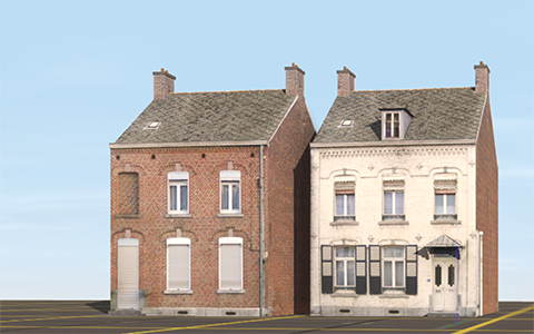 - Maison du Nord 12 dans le jeu, avec de gauche à droite : la façade côté cour et la façade côté rue...