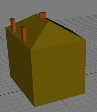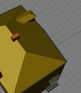J’avais d’abord ajouté la verrière en créant des sommets supplémentaires à l’objet principal de la maison. Mais il n’était alors pas possible de régler séparément l’opacité de la verrière et de la maison. J’ai donc supprimé cette 1ère verrière et j’ai construit un nouvel objet pour lequel j’ai pu définir une opacité propre, visible sur la dernière image ci-dessus.