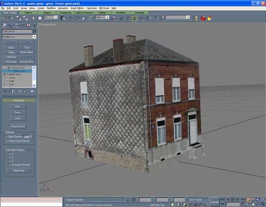 Depuis, j’ai amélioré la technique du mode nuit pour alléger les objets : je limite la texture nuit aux fenêtres éclairées, et dans le logiciel de modélisation (autrefois Gmax, et maintenant Blender), je crée des objets plans correspondant aux fenêtres éclairées, et que je place quelques centimètres devant la façade. J’applique à ces objets la texture nuit limitée aux fenêtres.