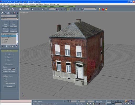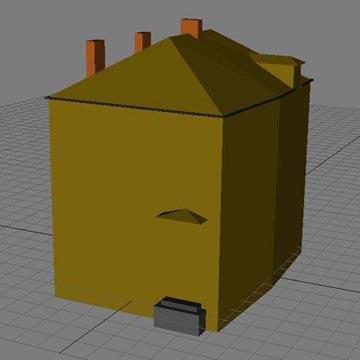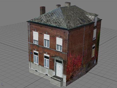 J’avais dans un premier temps créé une texture pour les 4 faces de la maison, mais le fichier CDP obtenu faisait un peu plus de 1 mo ; j’ai donc limité l’objet nuit à la façade rue avec la texture en conséquence. Le fichier est moins lourd (744 ko) et seule la façade côté rue est éclairée, ce n’est pas trop gênant.