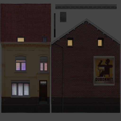 Cette 6ème maison est donc une maison de ville un peu bourgeoise, que je vais décliner pour Trainz en quelques variantes, comme pour la maison du Nord 3.