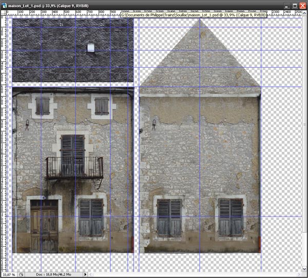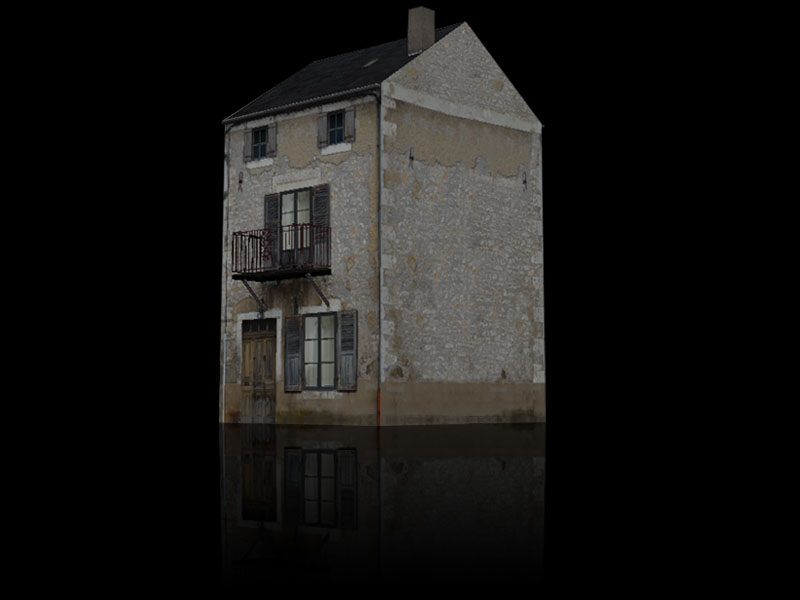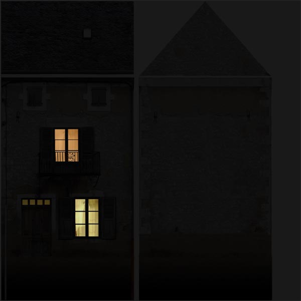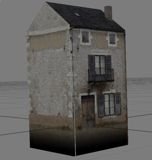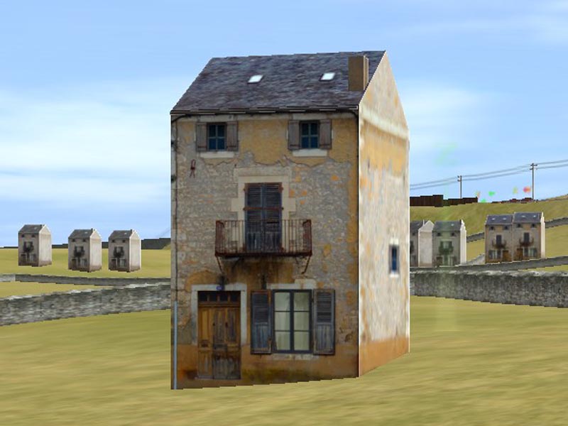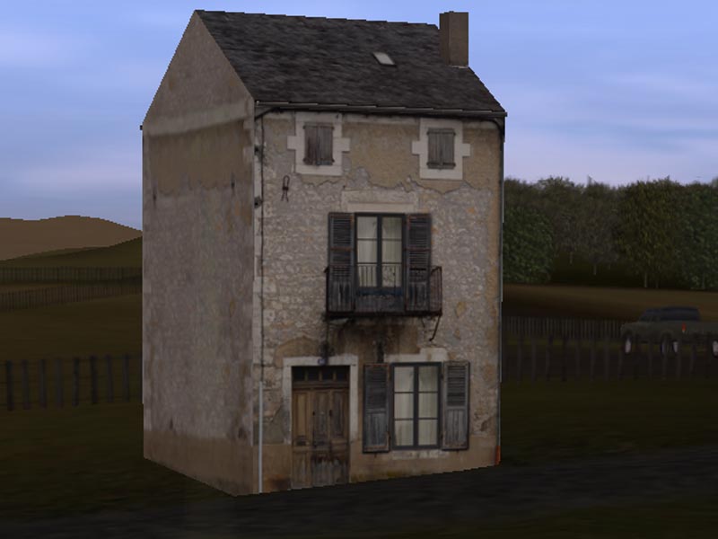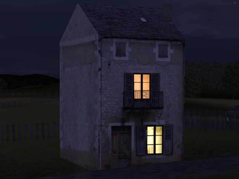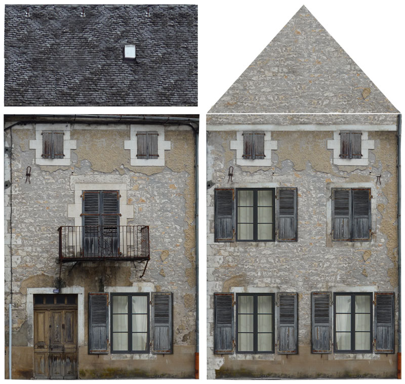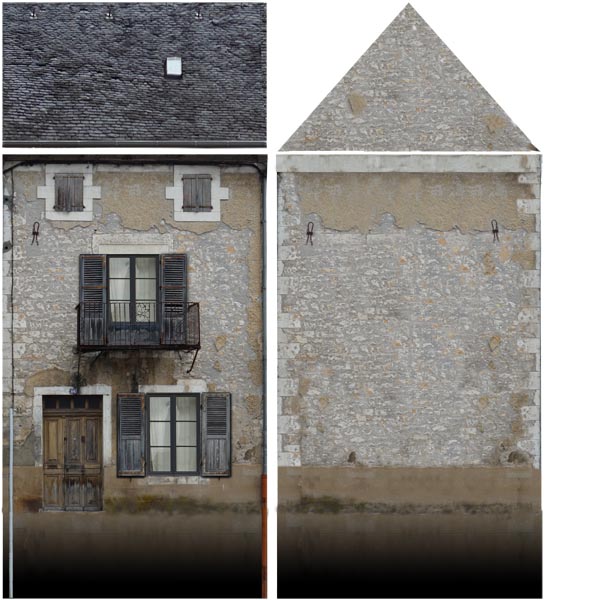 Après avoir réussi à faire une texture avec volets ouverts, je ne me suis pas privé de la facilité de faire une variante volets fermés, ce qui correspond à la photo initiale prise de cette maison !